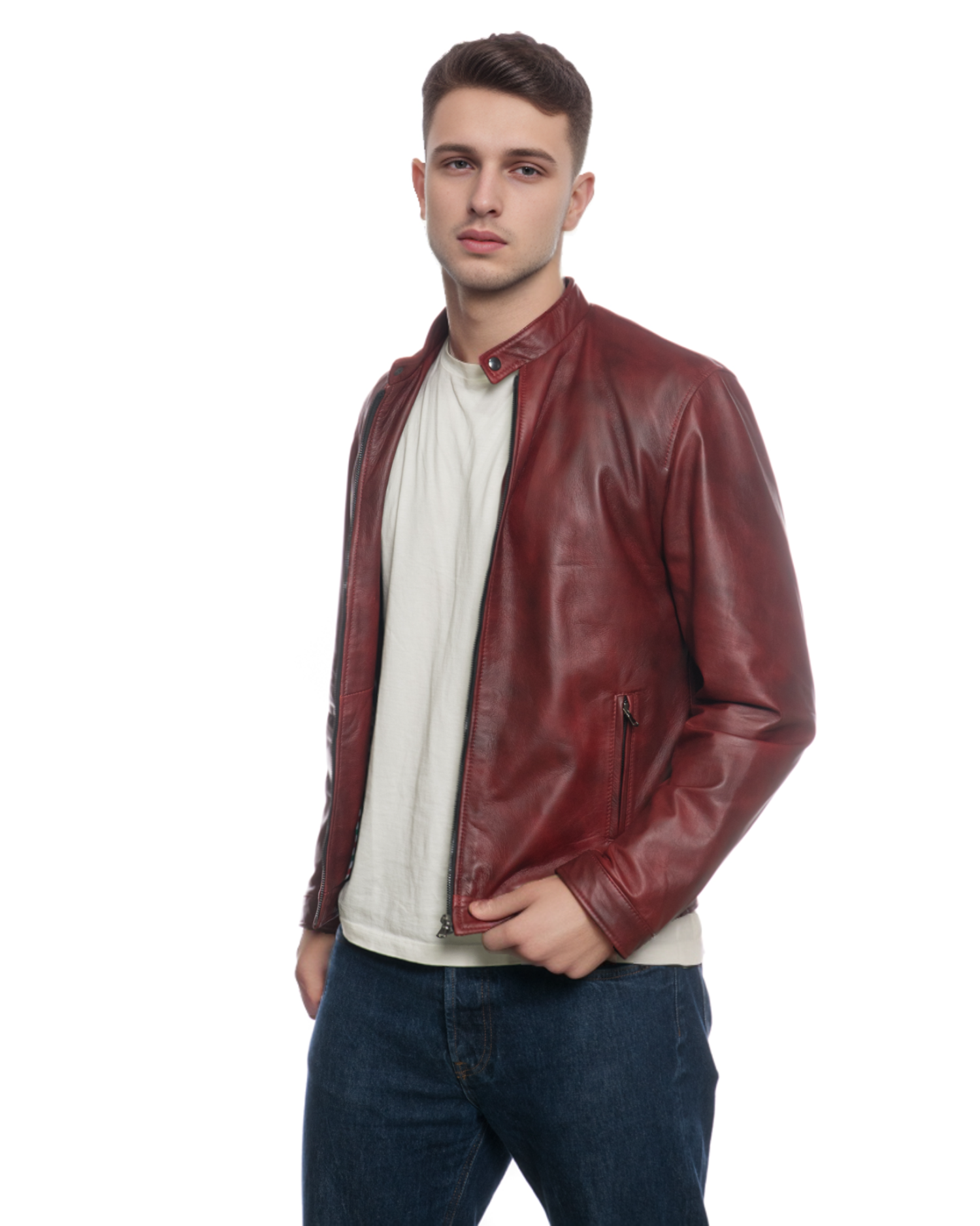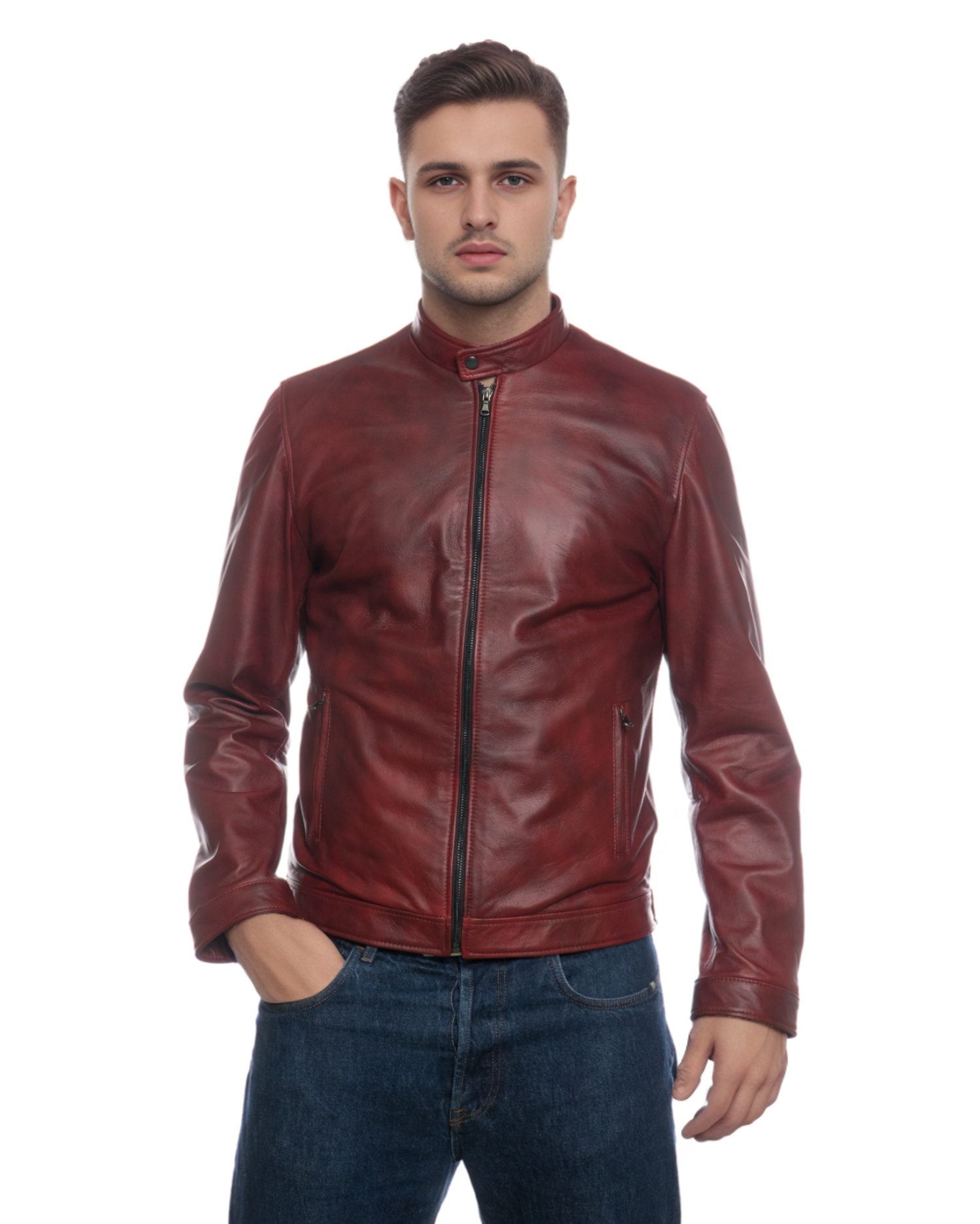 Piastri - Giacca Bordeaux da Uomo in vera pelle